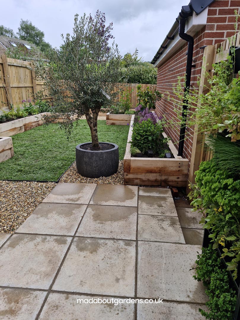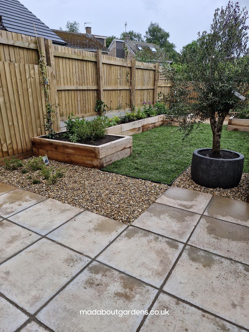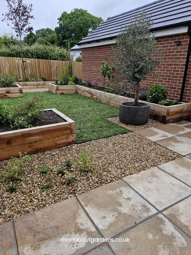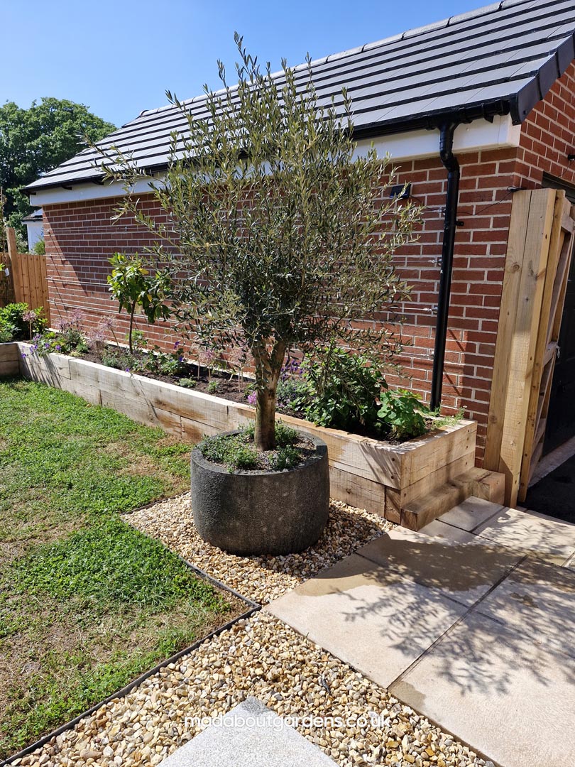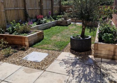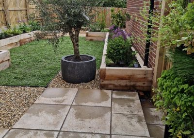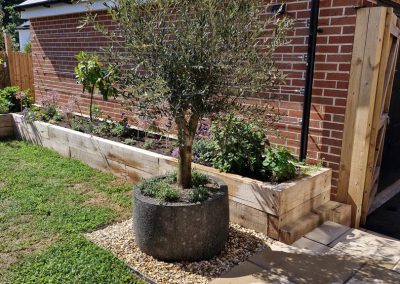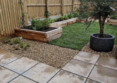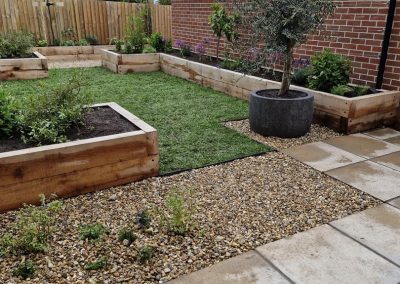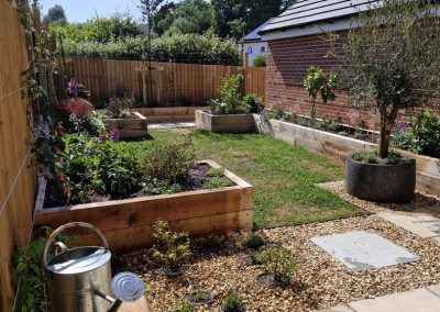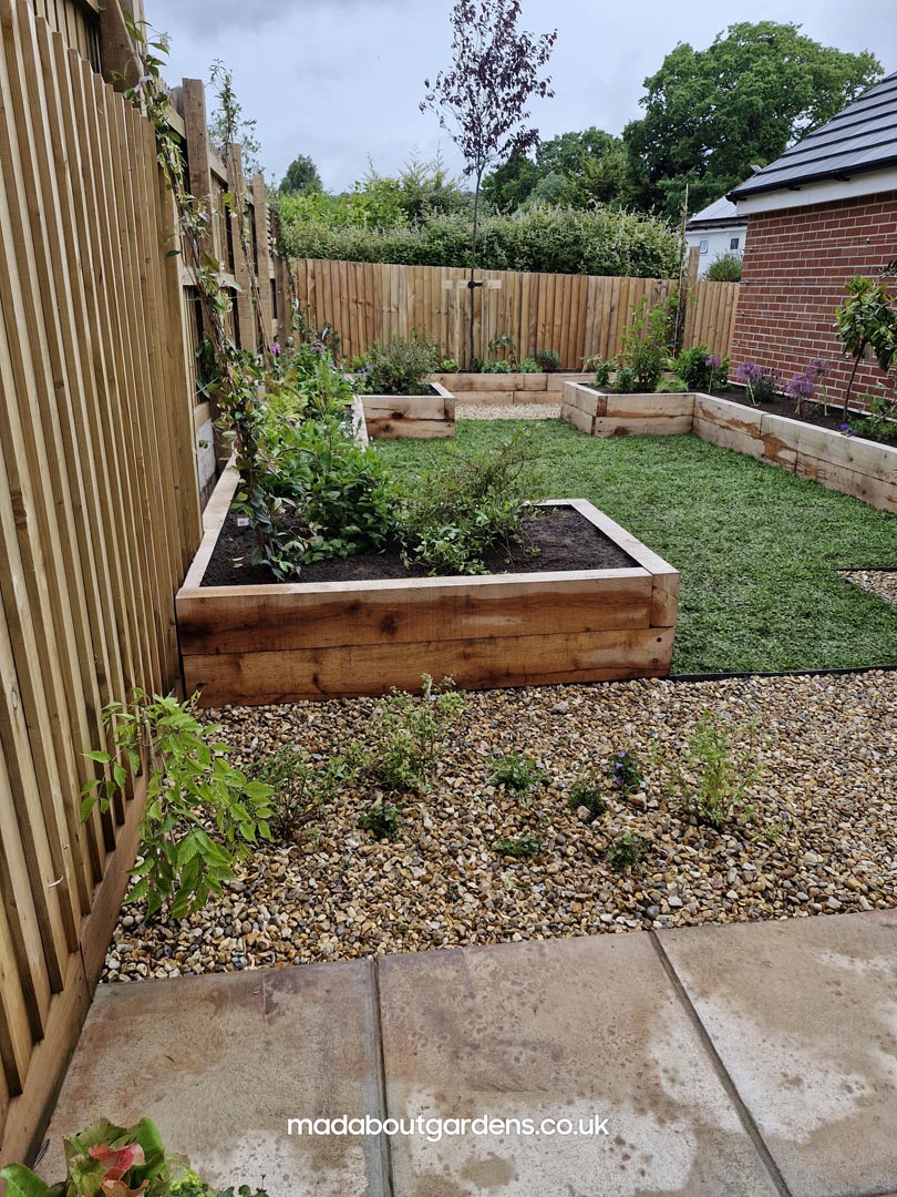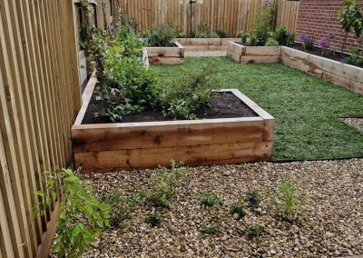 We met all the requirements of our client. Since the fence is higher than usual & the space is narrow, we thought that raised oak sleeper walls would work well in creating the structure & would make it easier for our client to work in the garden.